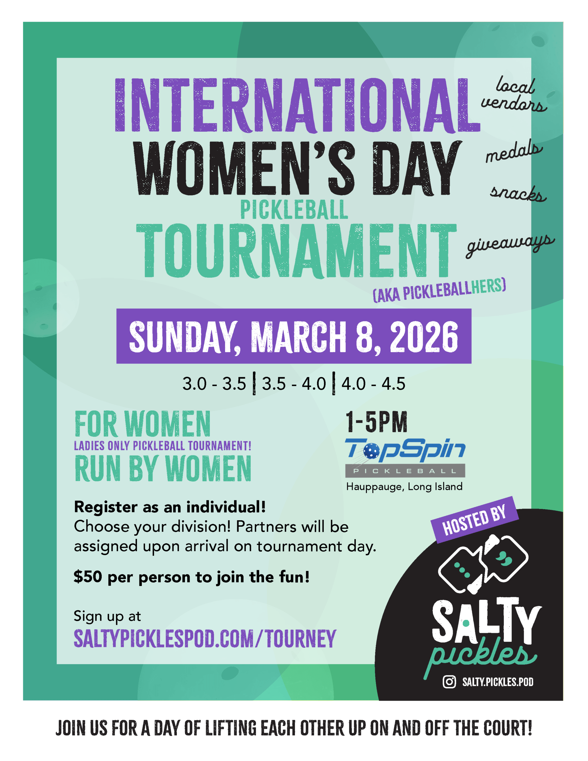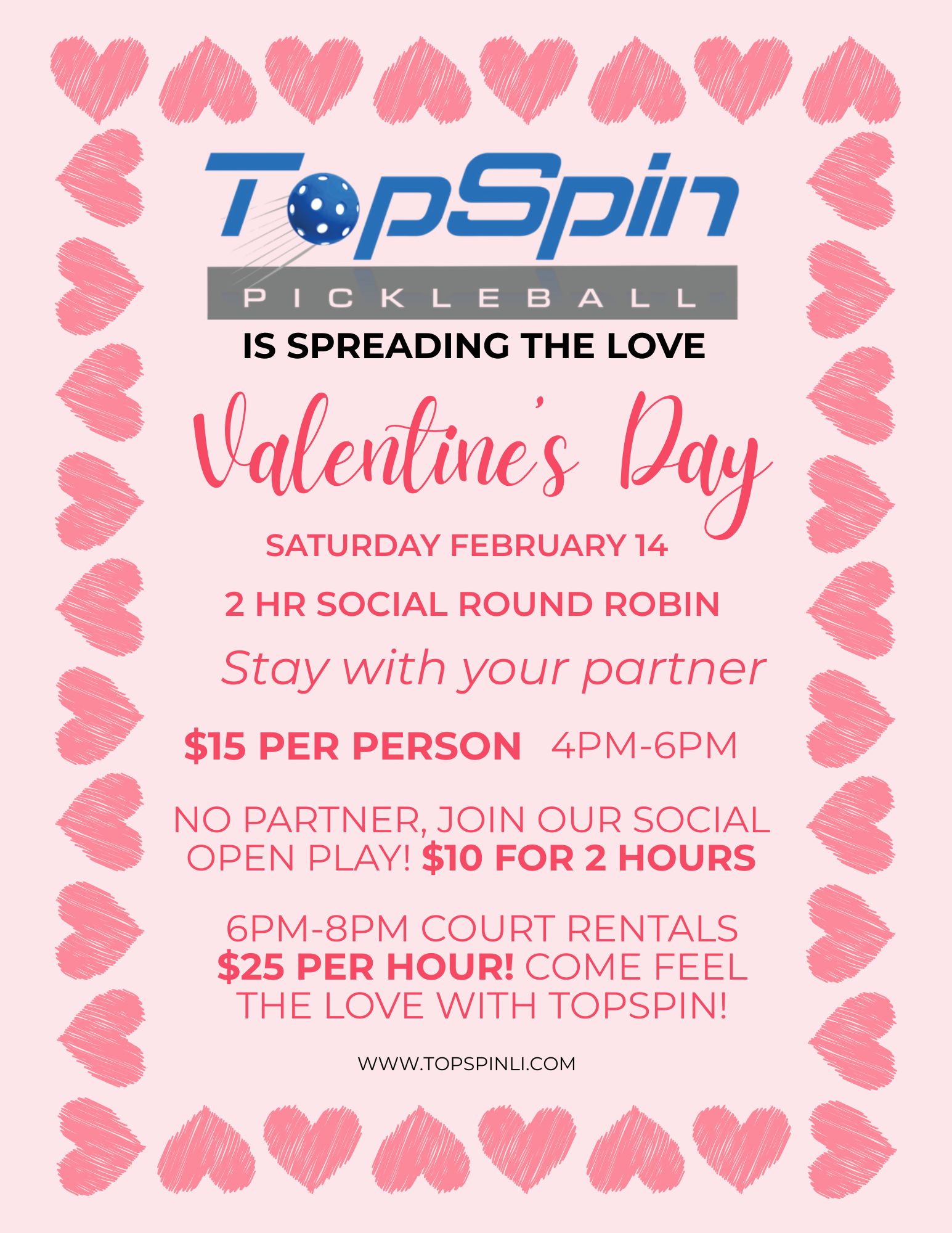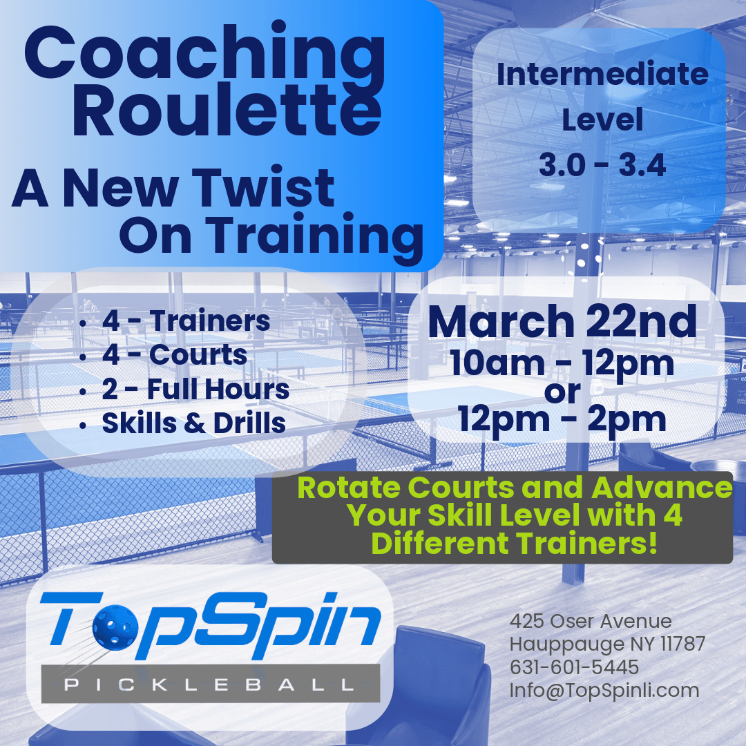 EventsInternational Women’s Day TournamentMore InfoRound RobinMore InfoCoaching RouletteMore InfoIntro to Pickleball – Free ClinicsMore InfoValentines Day SpecialsMore InfoPickleball Charity TournamentMore InfoWomens TournamentMore InfoWinter SmashMore InfoKids Pickleball ClinicMore Info